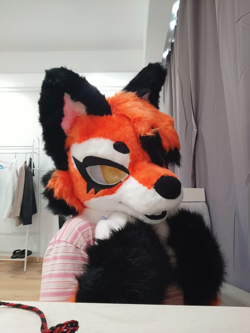 是一只有点自恋的笨蛋狐狸,有点中二,特征是有点杀马特的斜刘海和黄色星星眼睛